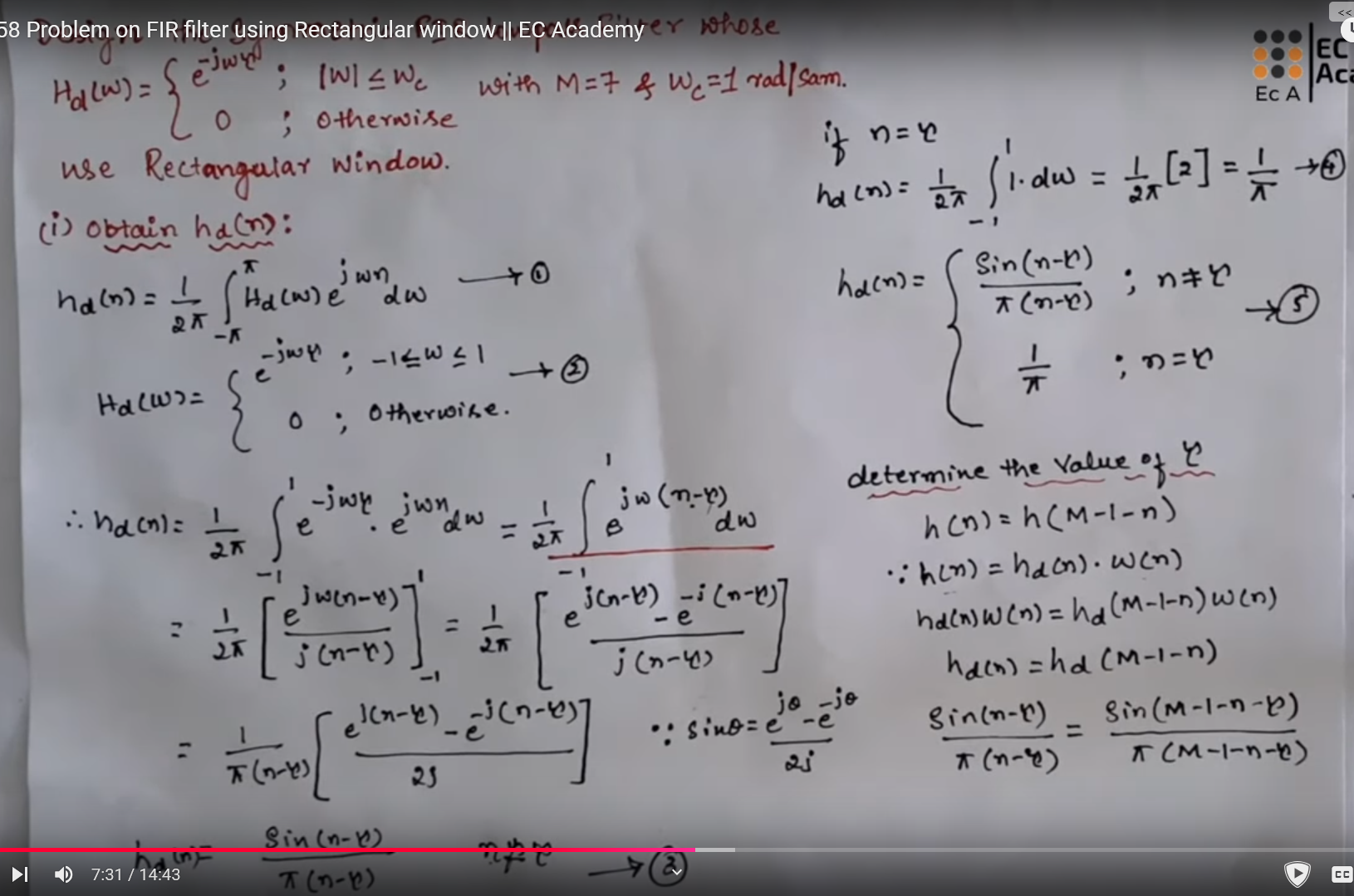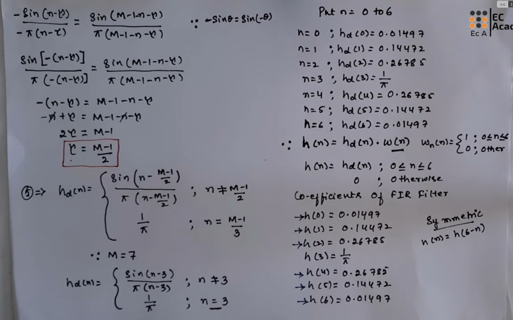 In the h(n) step at the mid right of the last image, you can see that we are multiplying hd(n) with w(n) which is just 1 with all the values (since its rectangular)